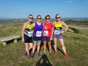 Five intrepid members of the Purbeck Runners took on the Camelot Challenge half marathon in the land of King Arthur last Saturday. Rose Clark, Belinda Bolar, Emma Risk, Tish Alberry and Tracey Colquhoun (left to right in the picture above) set off from Sherborne for the tough 13 mile run through the stunning but hilly (over 1,700 feet of ascent) countryside of Dorset and Somerset, passing many of the sites of the Camelot legends. The five completed the challenge on a blazingly sunny day, foregoing the free lunch at a pub half way! It was an epic day out with breath-taking views and a very friendly atmosphere to the race, demonstrating the very best of trail running.